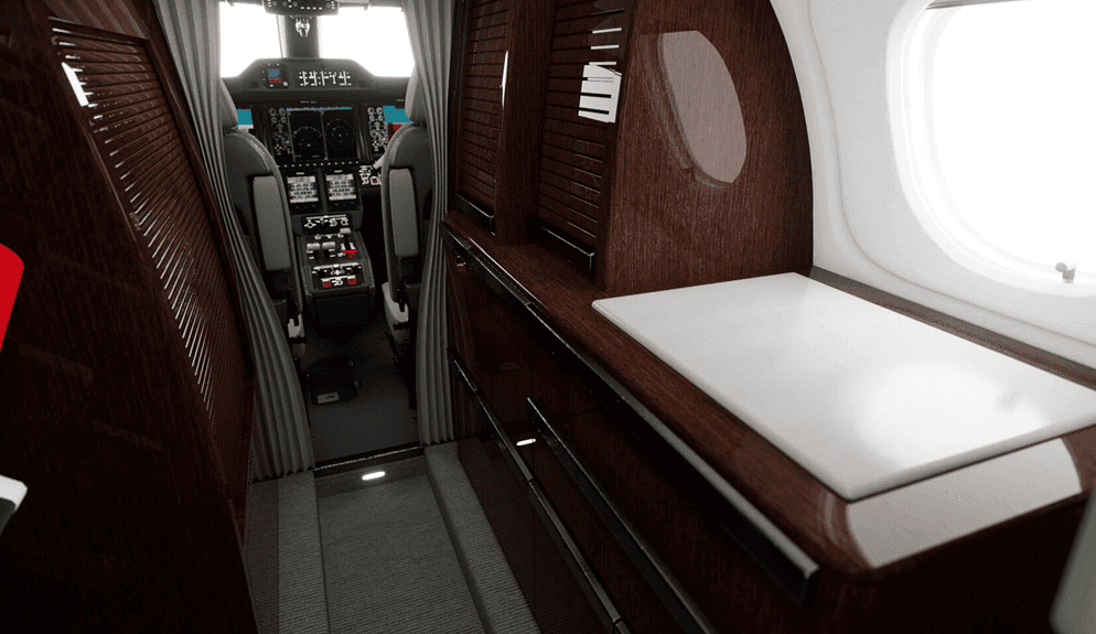 A spacious and customisable cabin with large windows, for exceptional passenger comfort and superior travel experience.